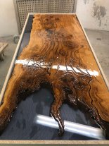 Follow the step-by-step manufacturing of tables in epoxy resin and solid oak